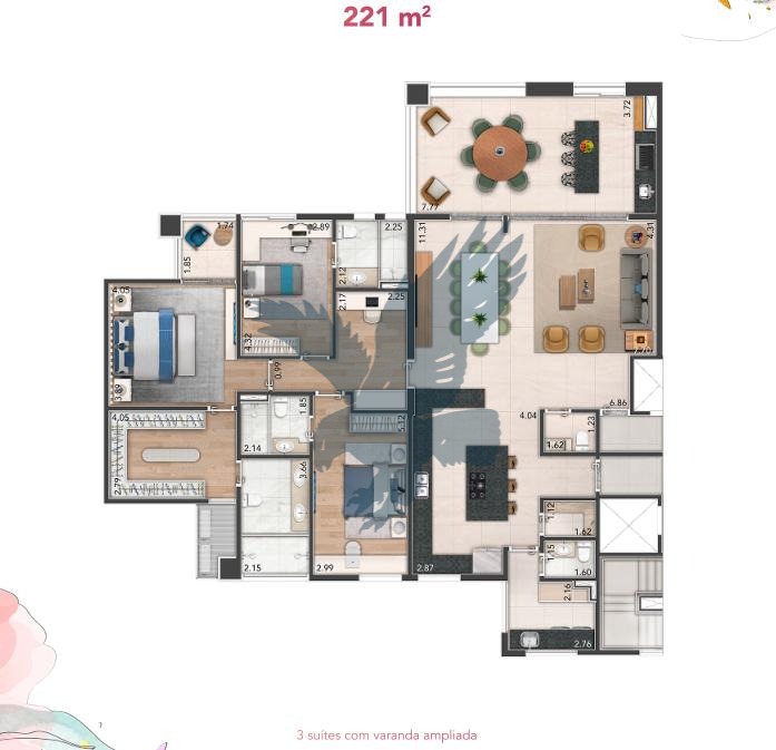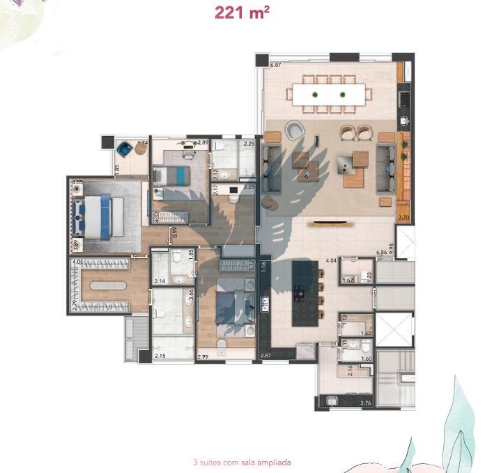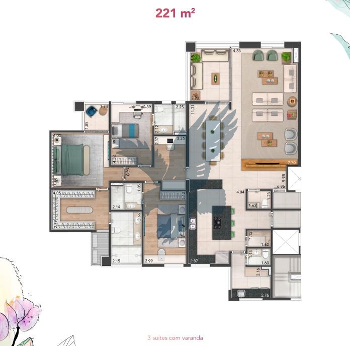 Lançamento! Apartamentos de alto padrão com 3 suítes (podendo ser configurado com 4 quartos), a master com closet e sacada, living para 3 ambientes integrado com cozinha e varanda gourmet, lavabo, escritório, área de serviço, despensa, 3 vagas de garagem e depósito, entregue já com várias benfeitorias. Condomínio contíguo ao Bougainville, ao lado do Shopping Galleria, com lazer completo.