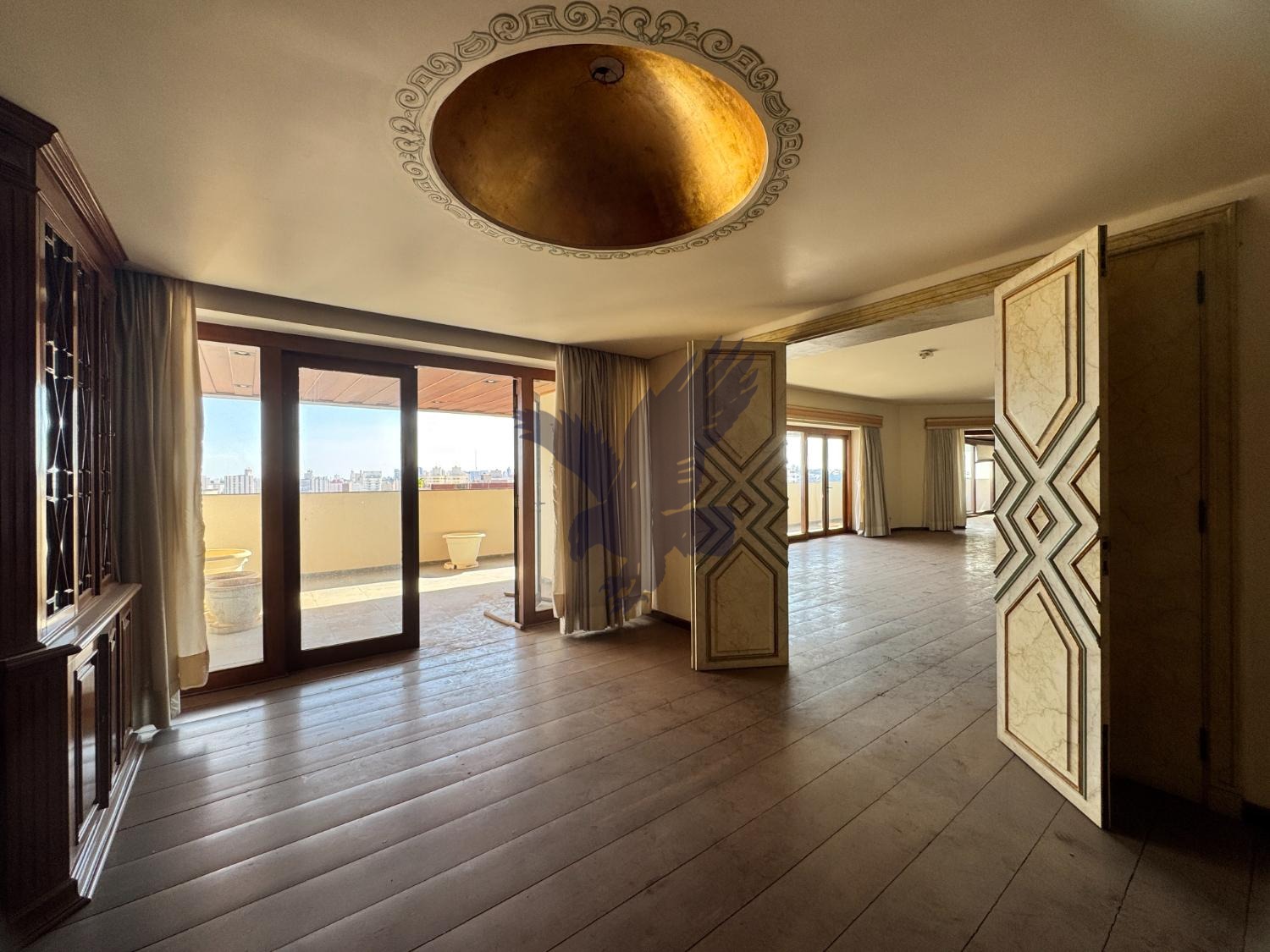 OPORTUNIDADE! PREÇO EXCELENTE! Apartamento andar bem alto, com bela vista da cidade, num dos mais tradicionais e icônicos edifícios de alto padrão do bairro, em localização privilegiada no bairro com todas conveniências do cotidiano no entorno, para quem gosta de muito espaço e pretende renovar o imóvel; configurado com 3 suítes (reversível para 4) com sacada e closet, sendo a master com 2 banheiros, hall de entrada com afrescos do artista espanhol San Juan, espaçoso living contendo bar com adega, ladeado por mais 2 salas (estar, biblioteca, TV, etc) todas integradas a ampla sacada. Além destas, ainda possui eventual cômodo para home theater, sala de jantar, copa, cozinha planejada, suíte/serviço, 2 despensas, roupeiro, cristaleira, depósito e 5 vagas de garagem cobertas e livres. Edíficio conta com pourt couchére, piscina, quadra de tenis, playground, salão de festas, sauna e espaço gourmet.