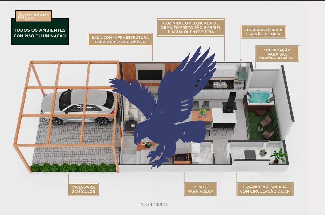 Condomínio com apenas 23 casas e lazer completo, a serem entregues em 24 meses, todas com 3 suítes, living para 2 ambientes, cozinha americana, lavabo, espaço para adega/despensa, área de serviço isolada, todas já equipadas com churrasqueira a carvão e coifa, infraestrutura para ar-condicionado, piso porcelanato na área fria e vinílico nos quartos, preparação para spa no quintal, banheiros com ventilação direta e box, 2 vagas de garagem e possibilidade de entrega com acabamentos e equipamentos mais sofisticados, negociados diretamente com a construtora.