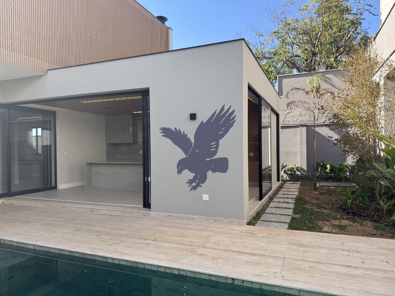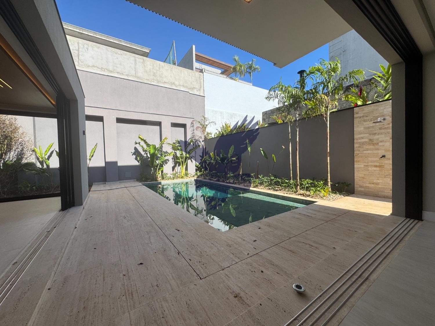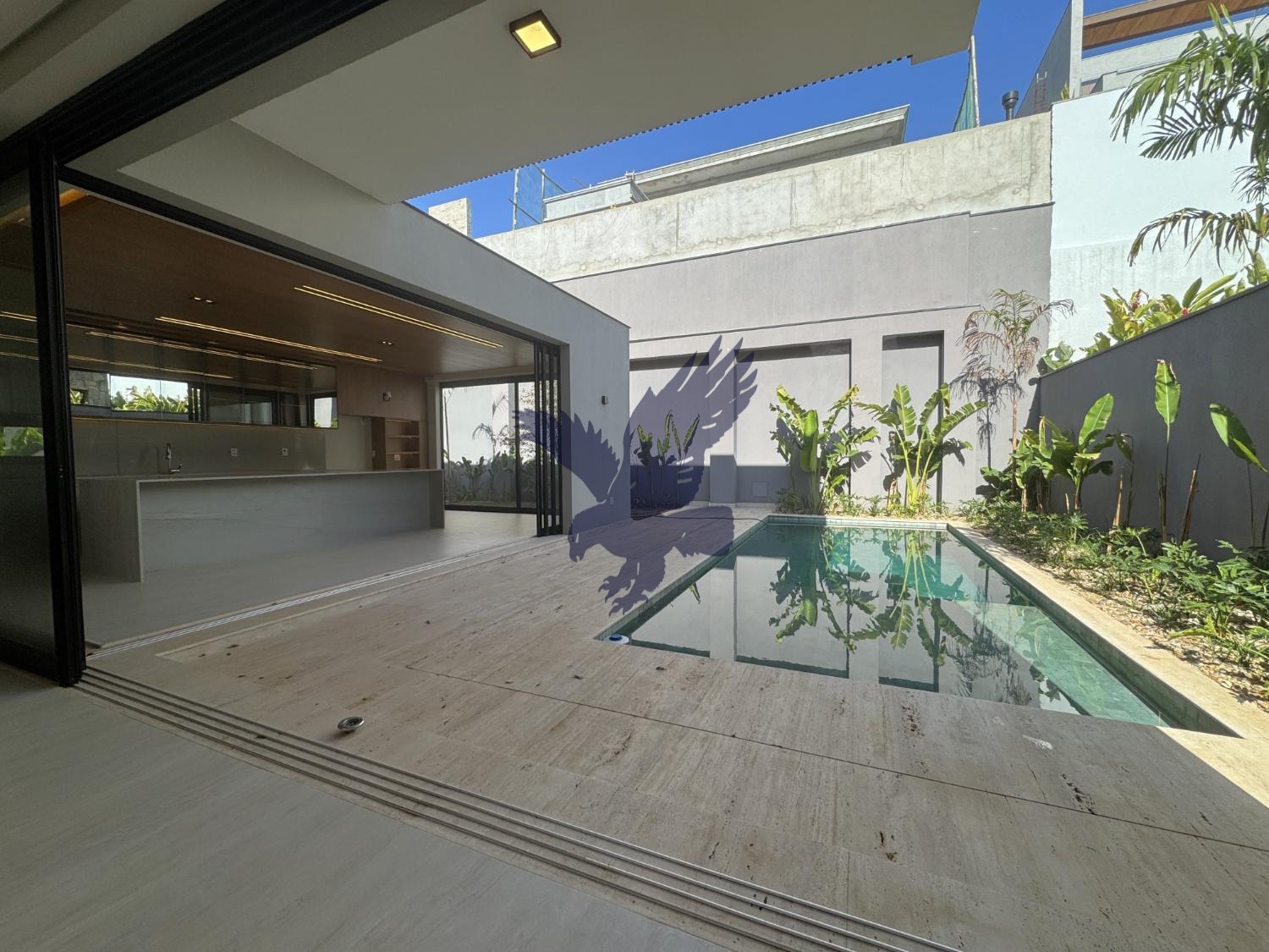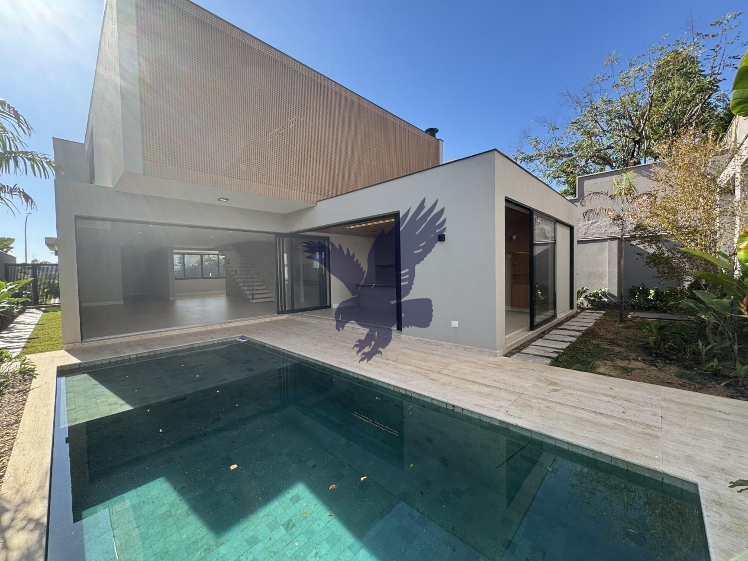 Residência contemporânea recém construída, projeto inteligente com integração entre os cômodos, repleta de acabamentos diferenciados de alto padrão (peça mais informações para detalhes), contendo no piso inferior espaço para home theather (escritório), lavabo, living pé direito duplo para 3 ambientes, cozinha planejada bem espaçosa, despensa, área de serviço, espaço já previsto para instalação de elevador, área gourmet com planejados e churrasqueira a gás, piscina, wc/apoio e paisagismo circundando toda a casa. Piso superior contendo 4 suítes, todas com espaço para closet, infraestrutura para ar-condicionado e brise quadriculada (tipo cobogó) em alumínio para atenuar calor e luz solar. Garagem para 4 carros, sendo 2 cobertas e infraestrutura já instalada para aquecimento solar, hidromassagem e iluminação. Pets permitidos.