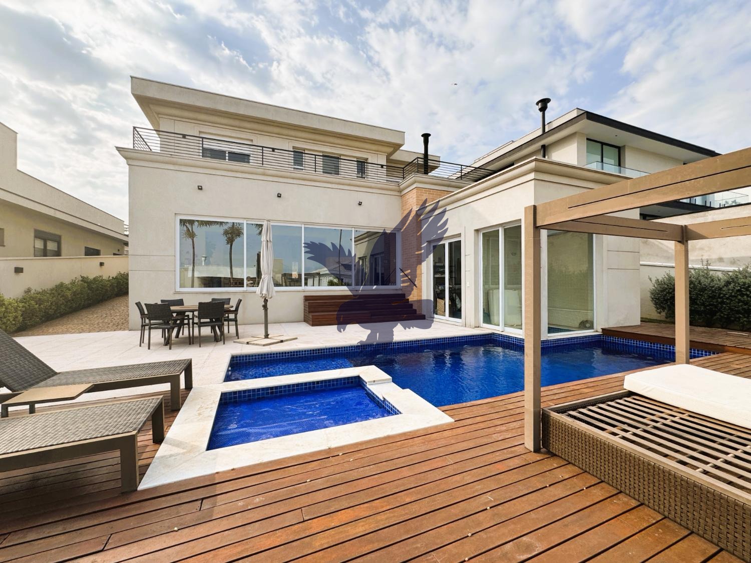 Casa magnífica, toda acabada com materiais e equipamentos de alto padrão, projetada e decorada pelos conceituados escritórios SHM (Sauer Homem de Melo) e Rita Diniz, contendo 4 suítes, 3 delas no piso superior com closets ( a master com hidromassagem), amplo solarium com infraestrutura para instalação de ofurô e vista incrível e definitiva, além de uma sala íntima. Piso inferior contempla mais uma suíte, espaçoso living com lareira, varanda com espaço gourmet completo, cozinha planejada isolável, lindo hall de entrada, área de serviço, suíte/serviço, despensa/espaço projetado para instalação de elevador. No subsolo uma adega bem convidativa com espaço para jogos também. Na área externa, oficina/atelier, piscina e jacuzzi climatizados com sauna integrada, um delicioso deck com ducha, pergolado, depósito e paisagismo que circunda toda a casa. Garagem para até 8 carros, sendo 3 cobertas. Animais de estimação benvindos.