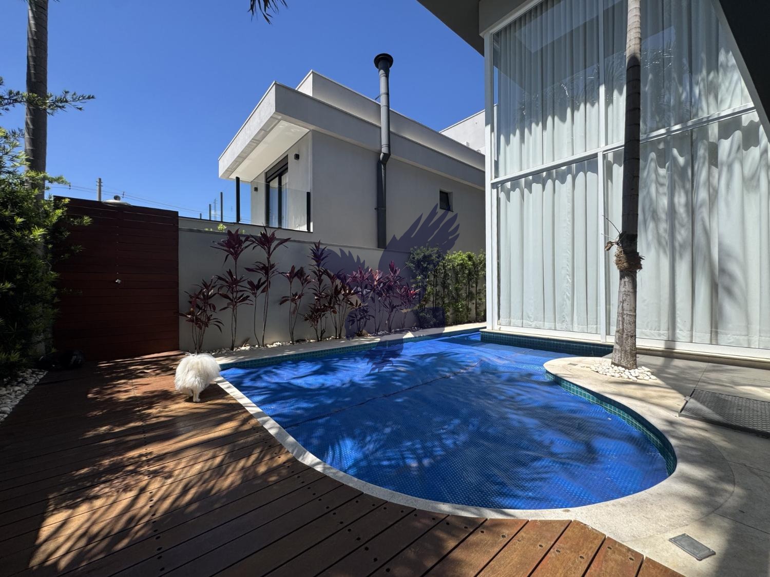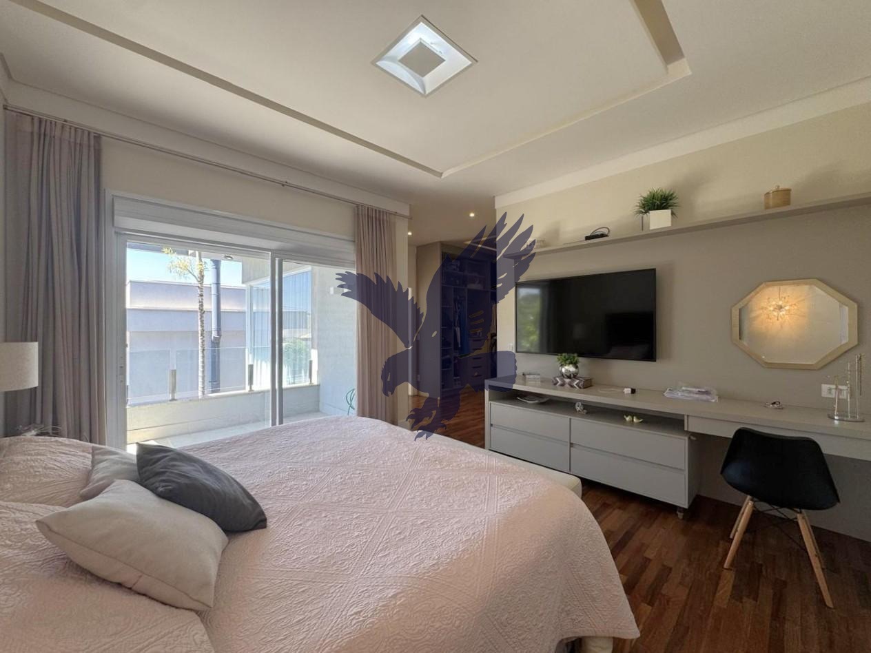 Projeto excelente e atual, assinado pelo conceituado arquiteto Dreison Santini, alto padrão de acabamento, contendo no piso superior sala íntima, 3 ótimas suítes, 2 sacadas, a master com closet e hidromassagem e opção de mais uma no piso inferior, este com escritório (reversível para uma quarta suíte), living com lareira e pé direito duplo, sala de jantar, cozinha com ilha, delicioso espaço gourmet completo com fechamento opcional, todos integrados, além de espaço cinema, lavanderia, despensa, depósito externo, piscina climatizada, wc de apoio, paisagismo e quatro vagas de garagem sendo duas cobertas. Animais de estimação permitidos.