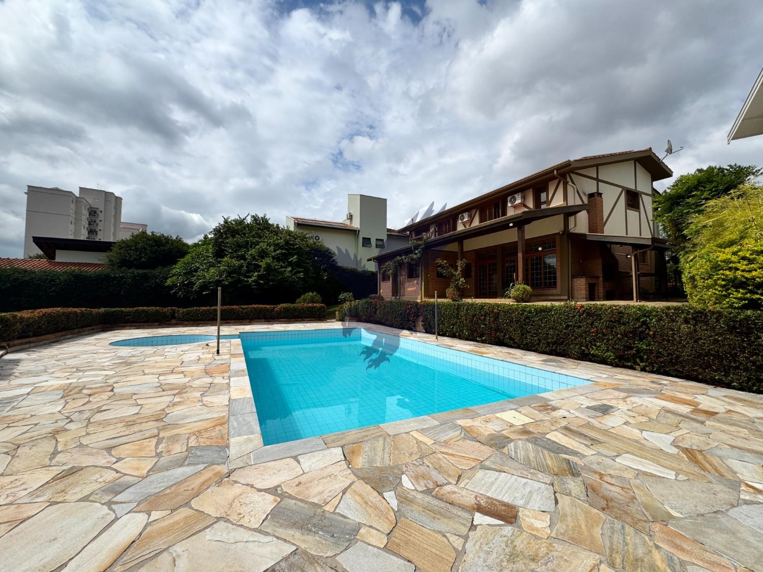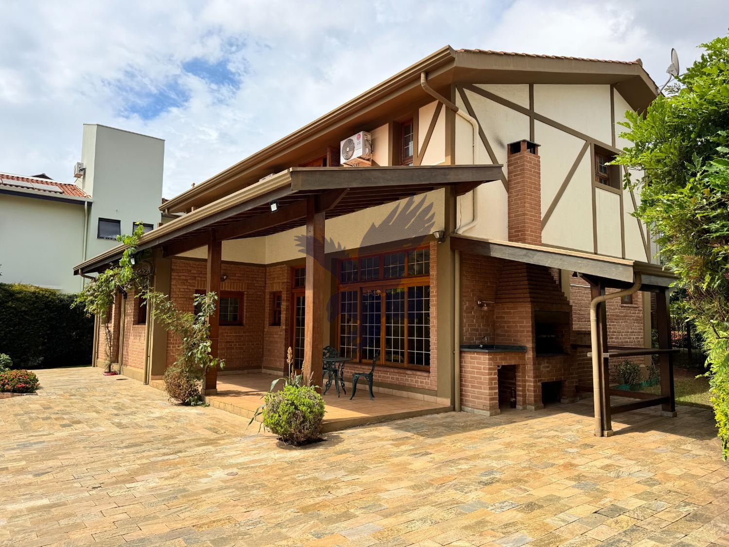 OPORTUNIDADE! Sobrado impecável num dos condomínios mais valorizados de Campinas, vizinho do Galleria Shopping e com fácil acesso a rodovias, clubes, escolas e com toda infraestrutura de serviços no entorno. Casa com construção sólida, paredes de 30 cm, madeiramento em freijó, inclusive com vidros duplos nas janelas proporcionam durabilidade e isolamento termoacústico, além de sistema fotovoltaico e aquecimento solar para seu conforto e economia. Piso superior tem 3 suítes tradicionais, 2 com sacada, configurável para 4 suítes, sendo 2 tipo americana (wc compartilhado com portas para ambos os quartos). No piso inferior, sala de jantar, amplo living com lareira integrado com cozinha americana e varanda, além de escritório e lavabo (ou mais uma suíte), espaço para adega/bar, suíte/serviço e área de serviço. Parte externa da casa, toda circundada por rico paisagismo, tem um quintal enorme, compreendendo uma espaçosa flora hortifruti, área gourmet com churrasqueira, piscina aquecida com jacuzzi, canil, edícula contendo vestiário e oficina (reversíveis para outra suíte). Garagem para até 5 carros, sendo 2 cobertas.